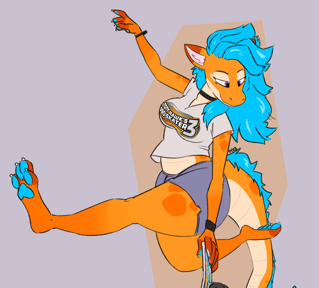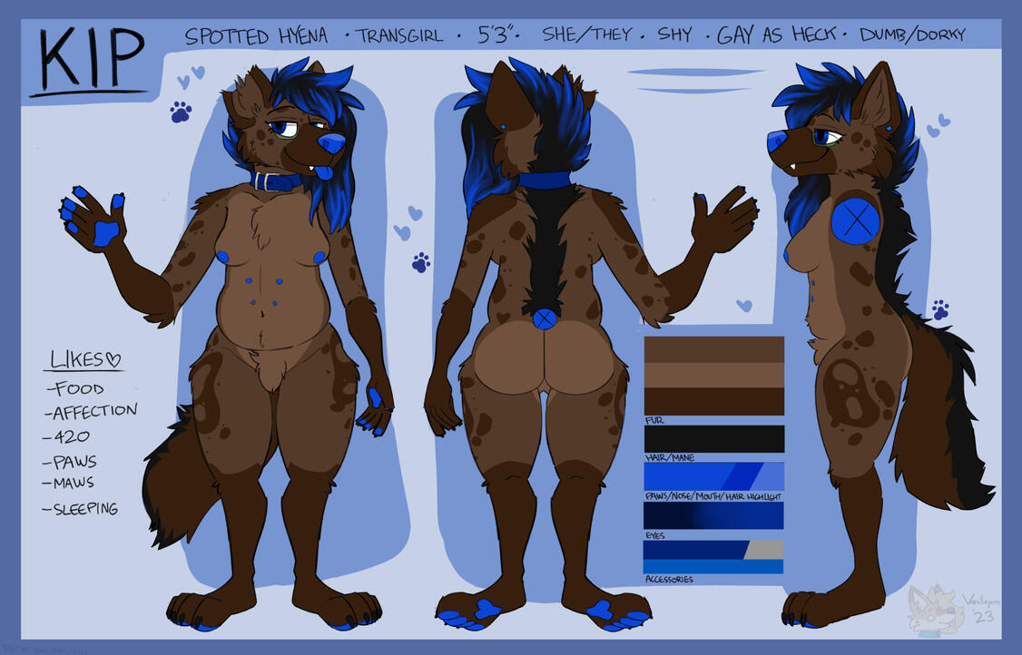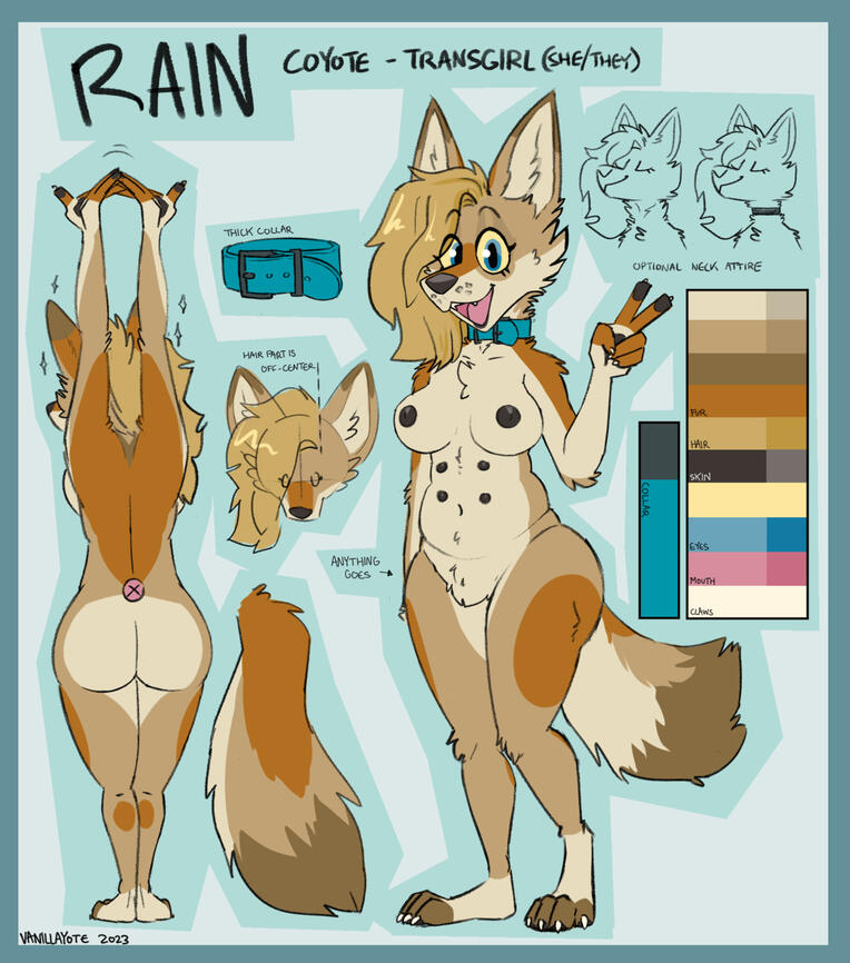 A full (front, back and side view) reference sheet of your character drawn as a color illustration with your choice of details.